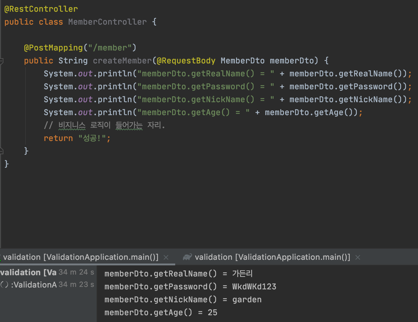 System.out.println("memberDto.getPassword() = " + memberDto.getPassword());