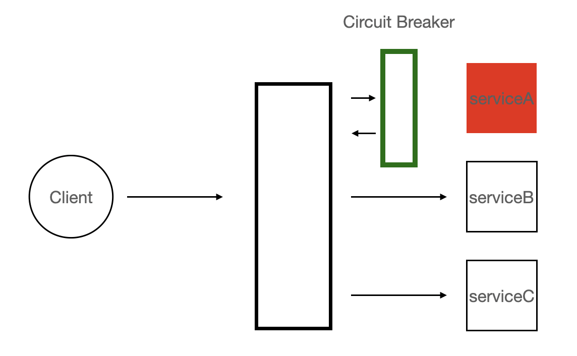예를 들어 serviceA는 완전 죽지는 않았지만 slow query등의 이슈로 인해 가용 thread가 더 이상 남아 있지 않을 수 도 있습니다. 이러한 상황에서 계속 해서 요청이 들어 온다면 불난 집에 기름을 붓는 꼴이 되어버릴 것 입니다.